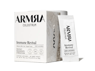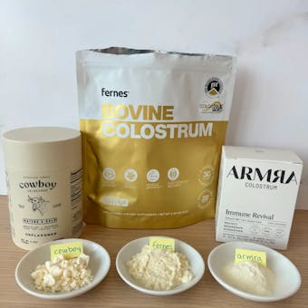 ARMRA has built strong brand recognition and offers a clean-label colostrum sourced from grass-fed cows, with third-party testing and a minimalist ingredient list. That said, the formula is skimmed—meaning key nutrients found in the natural fat are removed—and it's collected up to 48 hours after birth, which is well beyond the ideal first-day window. With a lower dose per serving and a higher price per gram, it may not deliver the same level of bioactive support as full-fat, first-day colostrum. While ARMRA may appeal to those looking for a simple option from a recognizable brand, it falls short for those looking for the most pure colostrum.